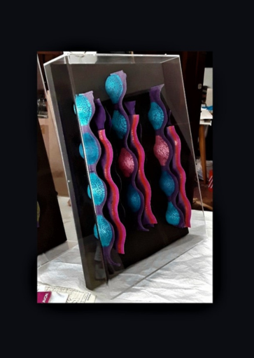 Estas obras se han realizado a partir de los pallets de cartón de frutas. Los que pasarían a ser residuos considerados desechos o basura.