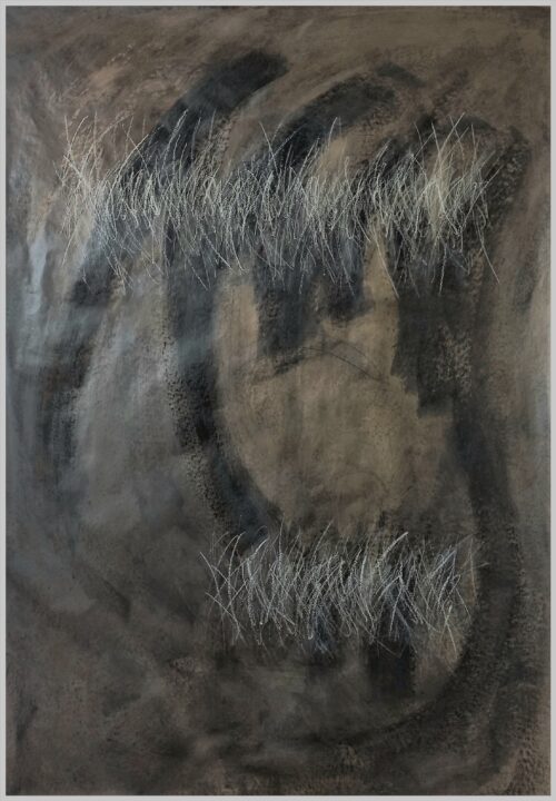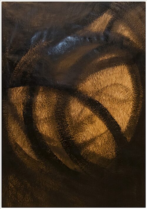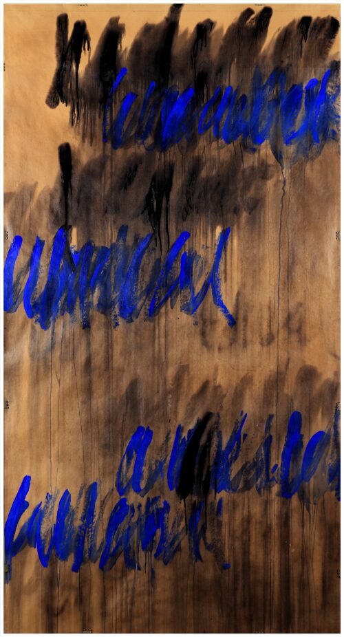 El petróleo, origen del asfalto y motor del mundo moderno, es también el causante de crisis ambientales y geopolíticas. En esta obra, el azul profundo evoca tanto su riqueza como su devastación, representando la contradicción entre el progreso y la destrucción irreversible que genera.